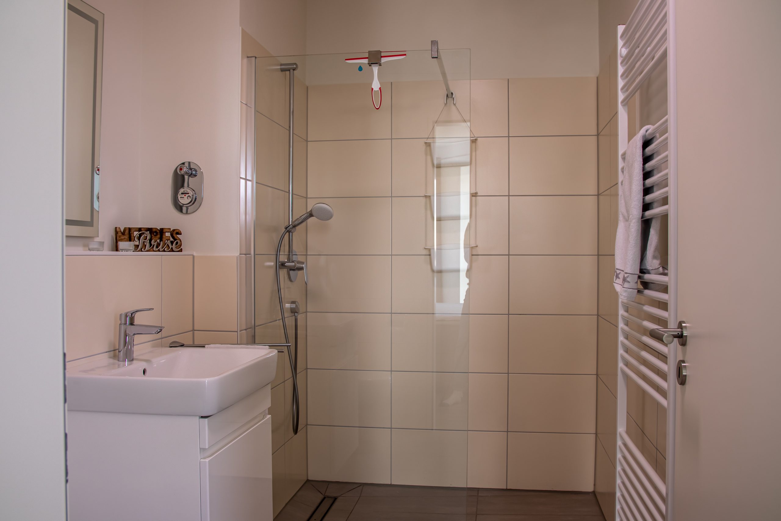 Du möchtest direkt nach dem Aufwachen frische Seeluft atmen und einen Meerblick aus jedem Zimmer genießen? Dem steht hier nichts mehr im Wege! Für erholsame Nächte steht dir im ersten Schlafzimmer ein 1,60 Meter breites Bett, sowie das hochwertige En-Suite-Badezimmer mit WC und bodengleicher Dusche zur Verfügung.