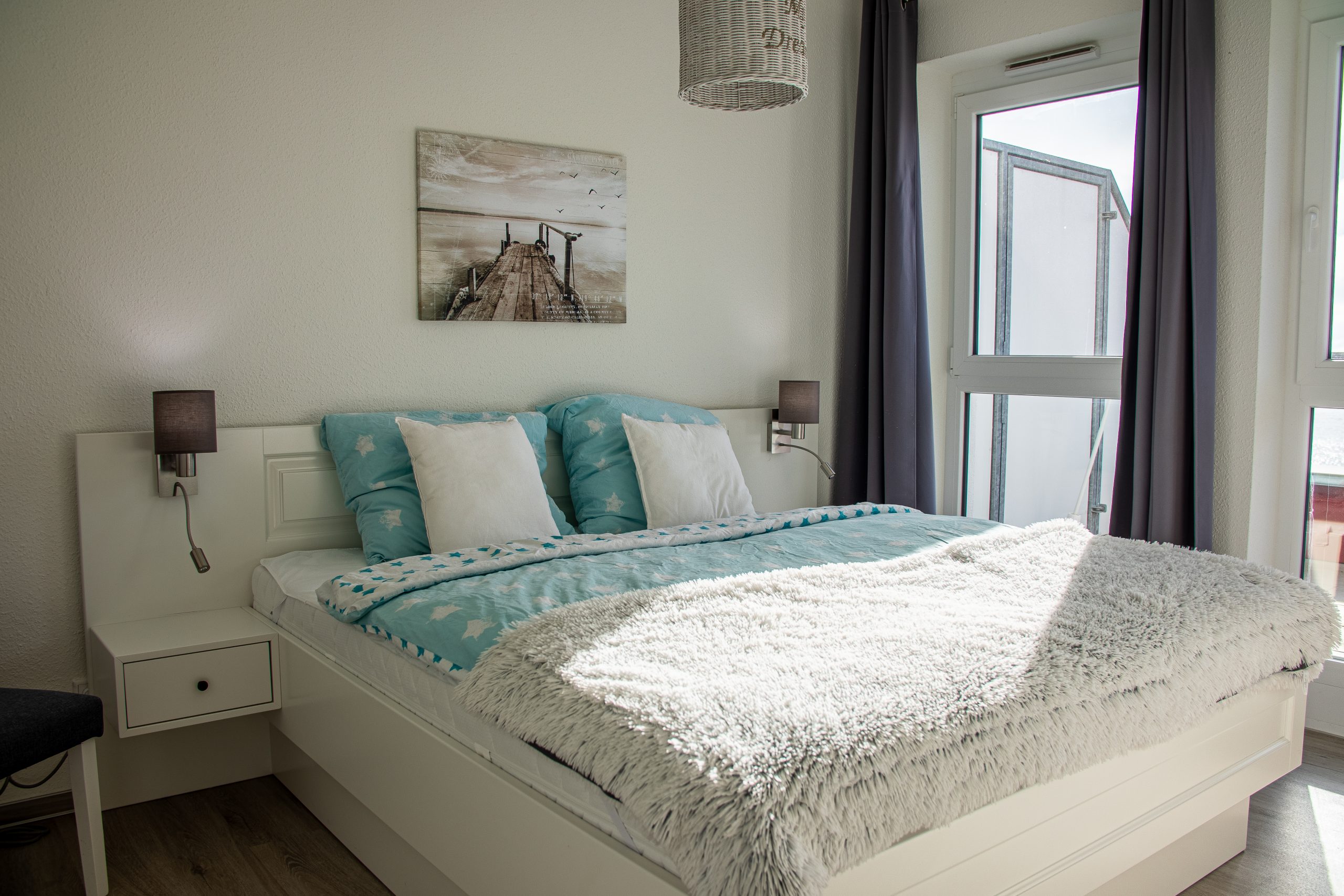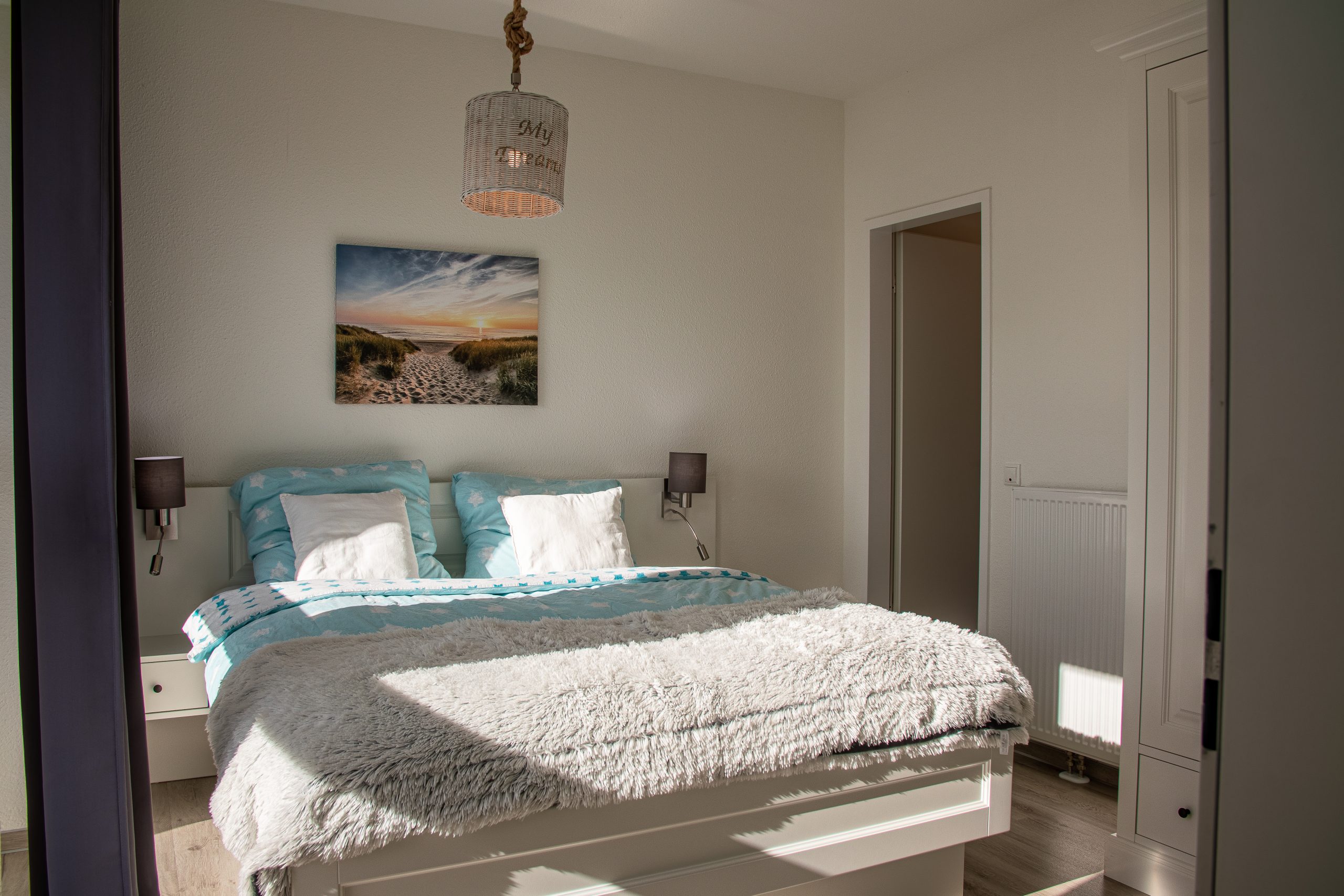 Im zweiten Schlafzimmer lädt das 1,80 Meter breite Bett zu kuscheligen Nächten ein.